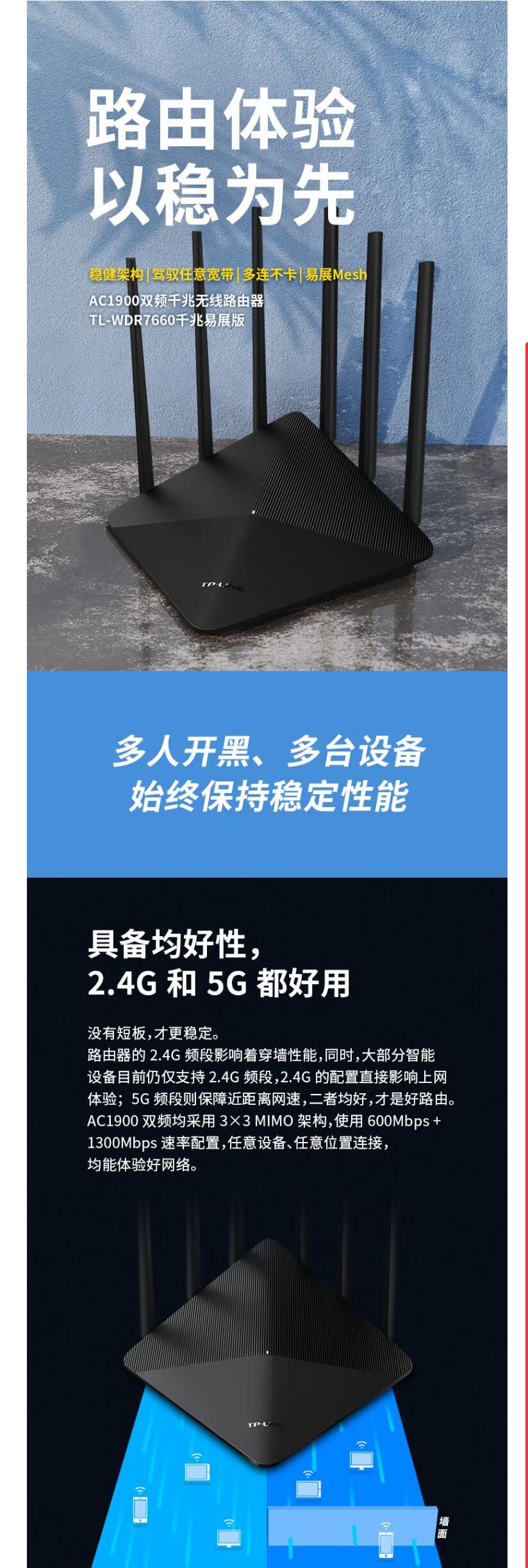 TP-LINK WDR7660 1900M无线 双千兆路由器 台