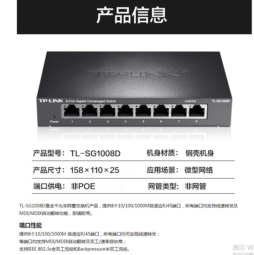 TP-LINK 千兆交换机 TL-SG1008D 单位:件