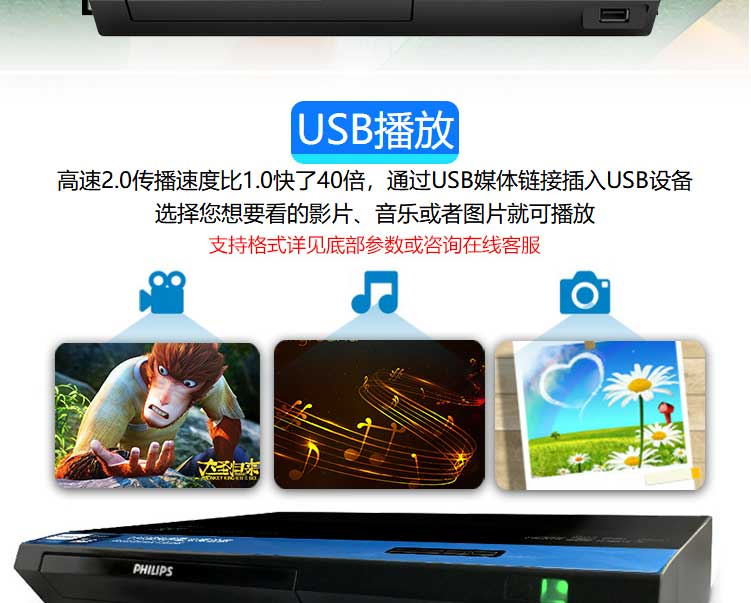飞利浦 /VCDji BDP2590 USB/CD/VCD/DVD 270*41*199mm 110-240V/50/60HZ