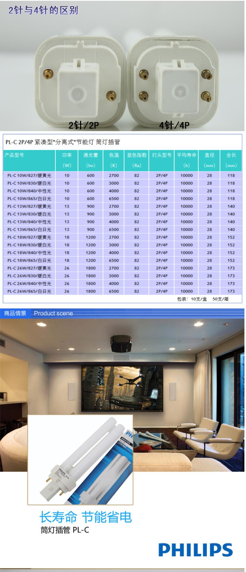飞利浦 13W-6500K 插管灯 销售单位:只