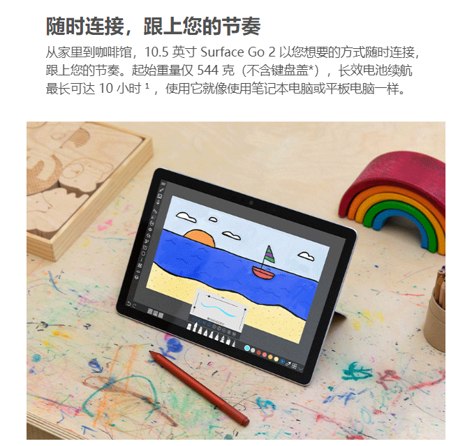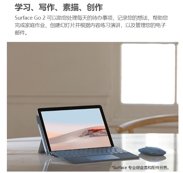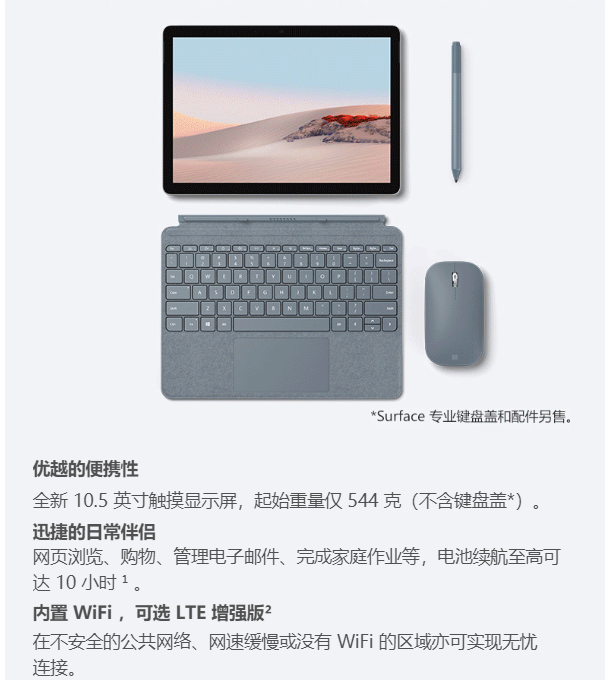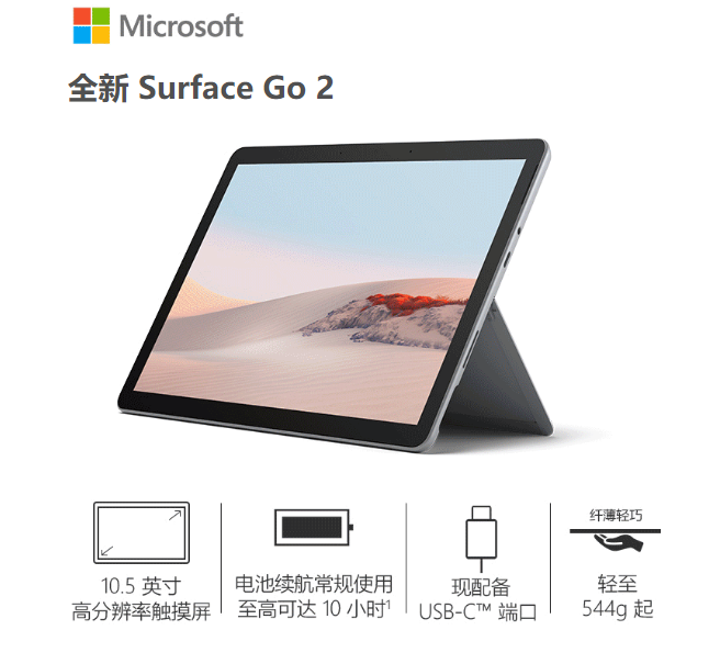 微软 Surface Go 2 二合一平板电脑 笔记本电脑 10.5英寸 奔腾金牌4425Y 8G 128G SSD 加键盘套装