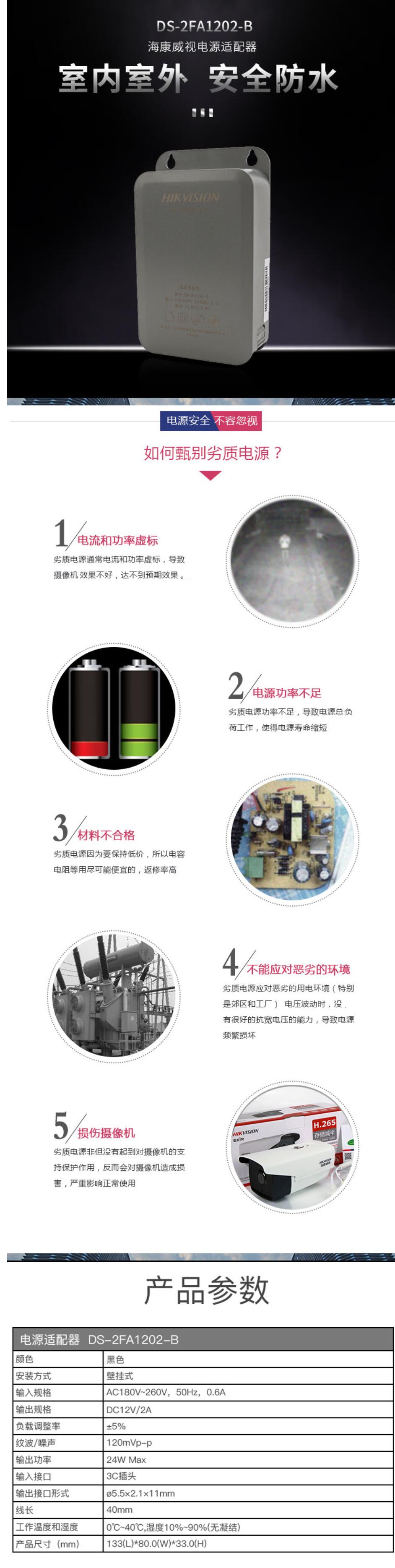 海康威视 DS-2FA1202 监控摄像头电源适配器DC12V2A