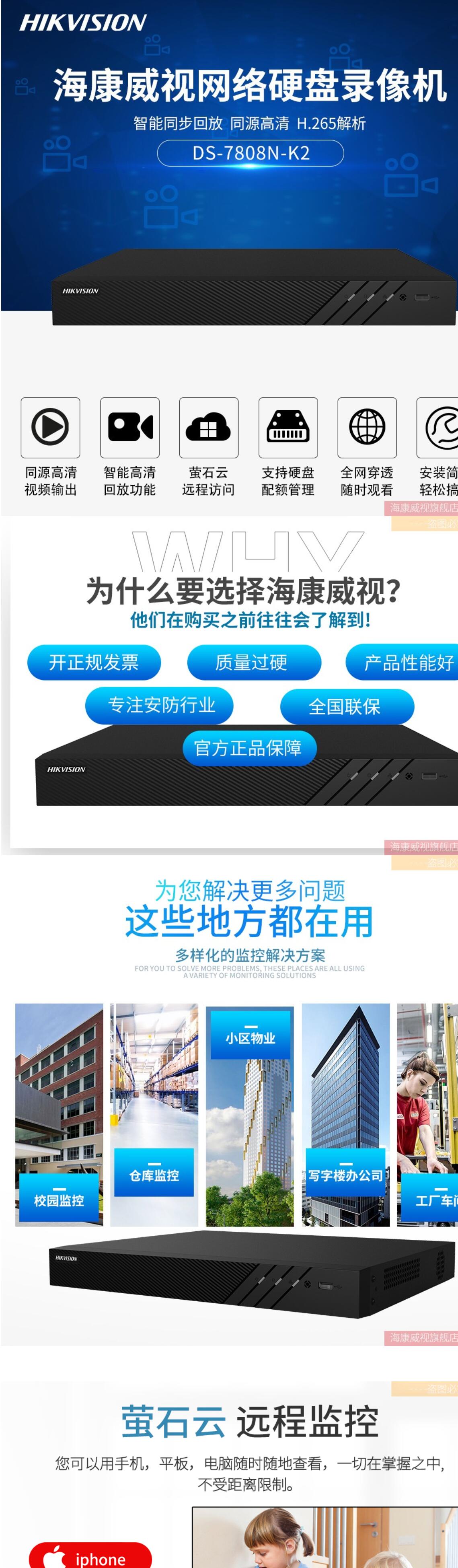 DS-7808N-K2 硬盘录像机 销售单位:台