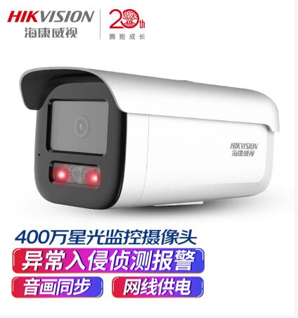HIKVISION/海康威视 DS-2CD3T46WDV3-I3 400万星光2K高清夜视摄像机可拾音室内室外网线供电设备,销售单位:台