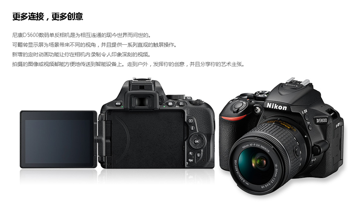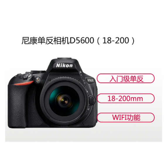 尼康D5600单反数码相机套装 (AF-S DX 尼克尔 18-200mm f/3.5-5.6G ED VR II 单反镜头)+美康 F-59多功能相机包