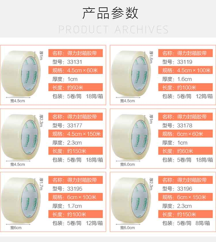 33131 透明胶带 封箱胶带 粘性强打包胶带45mm*60m封箱带 90卷/箱 一卷价