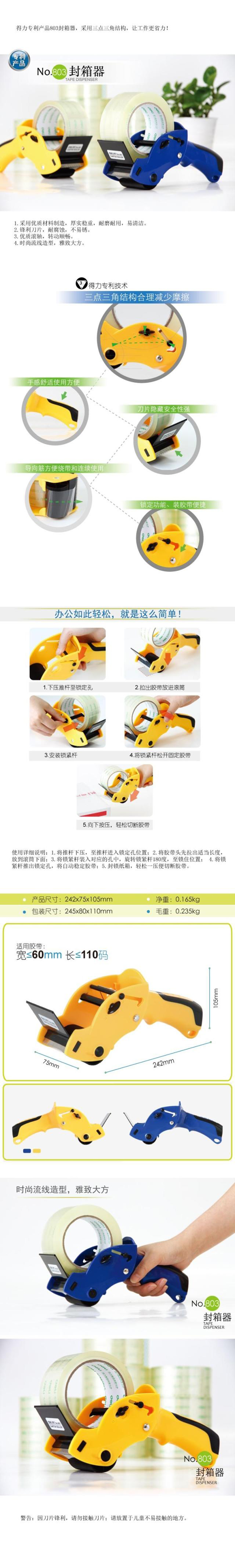 803 金属封箱器/打包器/胶带底座/胶带切割器(适用胶带宽度63mm) 不锈钢刀口 颜色随机