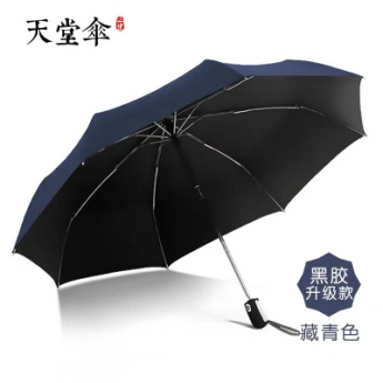 天堂 自动开合 黑胶三折晴雨商务伞 3331E升级款 聚酯纤维 58cm*8k UPF50+(单位:把)