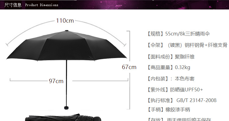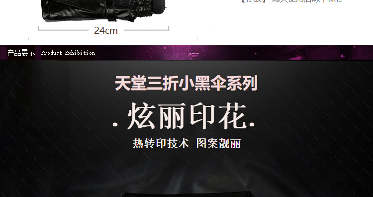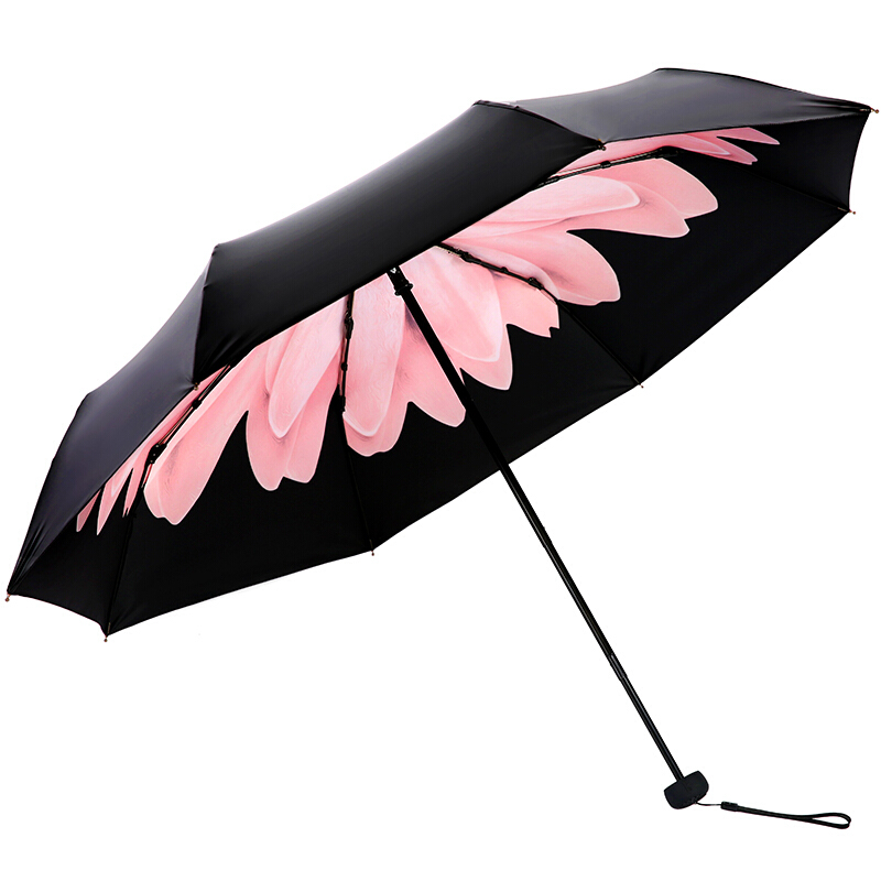 天堂 全遮光黑胶三折晴雨伞 31806E 55cm*8k UPF50+ 浅妃粉