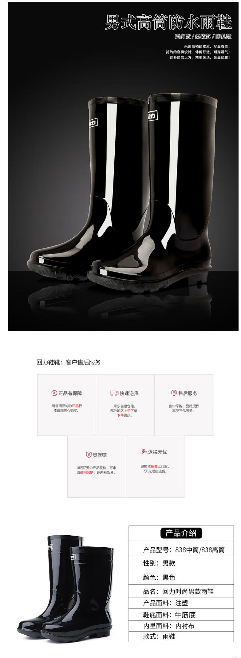 回力 HL838 高筒 黑色雨鞋