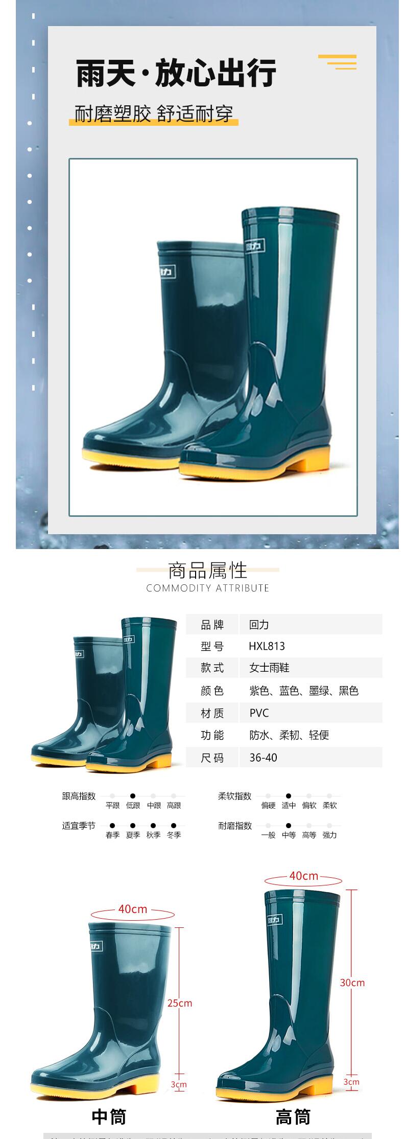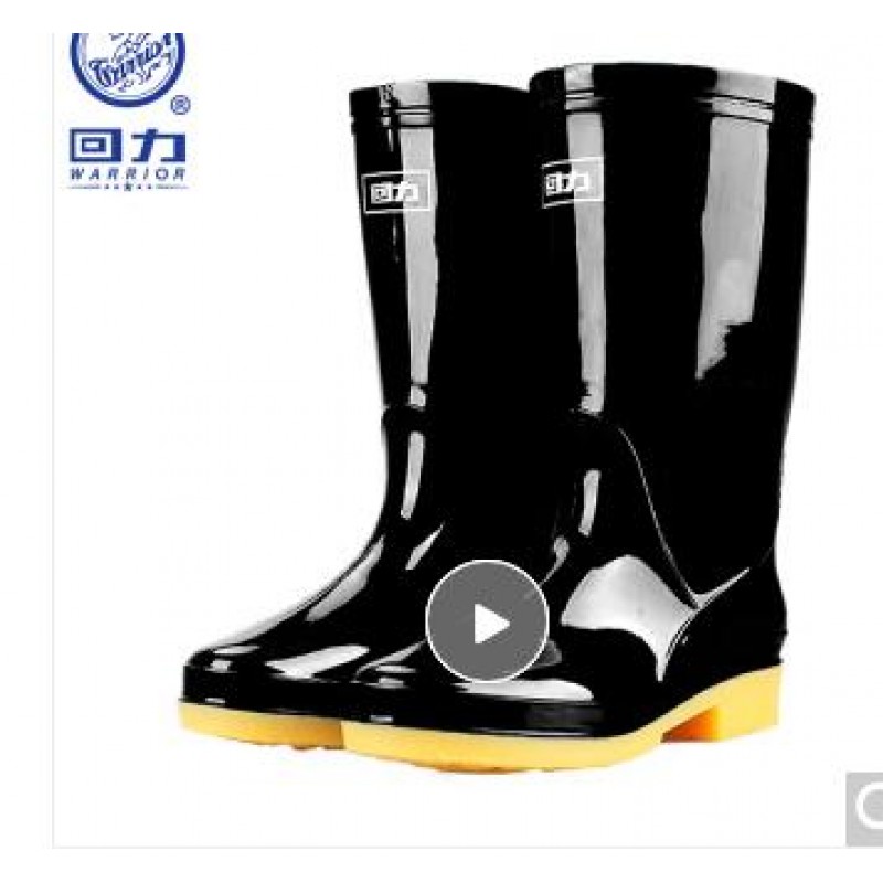 回力 中筒37码 回力雨鞋女时尚户外下雨天高筒防水雨靴水鞋耐磨胶鞋6813黑色中筒37
