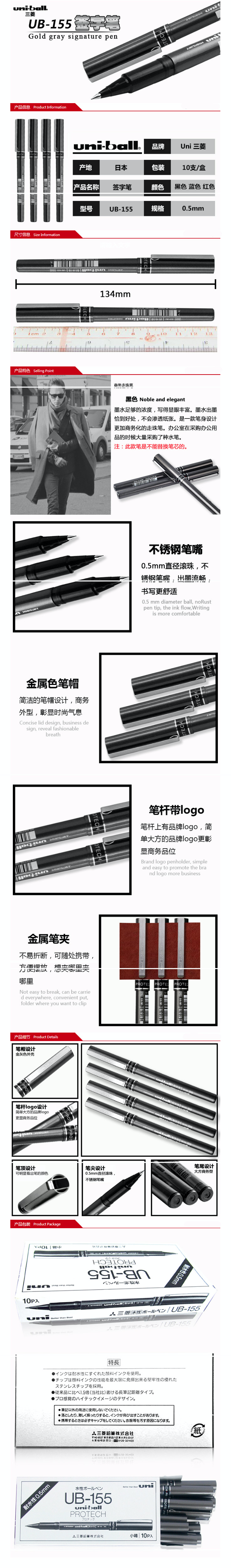 三菱 UB-155-0.5mm 黑色 防水耐晒 中性笔 10支/盒(销售单位:盒)