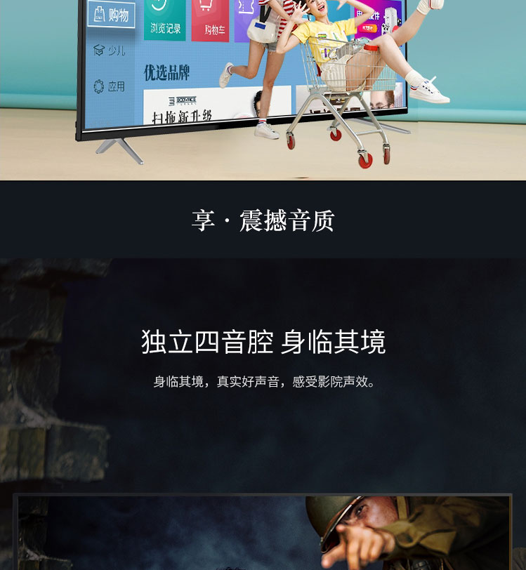 创维 4K超高清网络智能电视 43E388G 43英寸 分辨率3840*2160DPI 酷开系统 不含底座 黑色