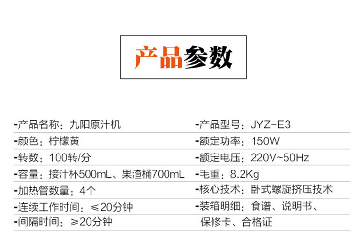 九阳 原汁机 JYZ-E3 150w 黄色