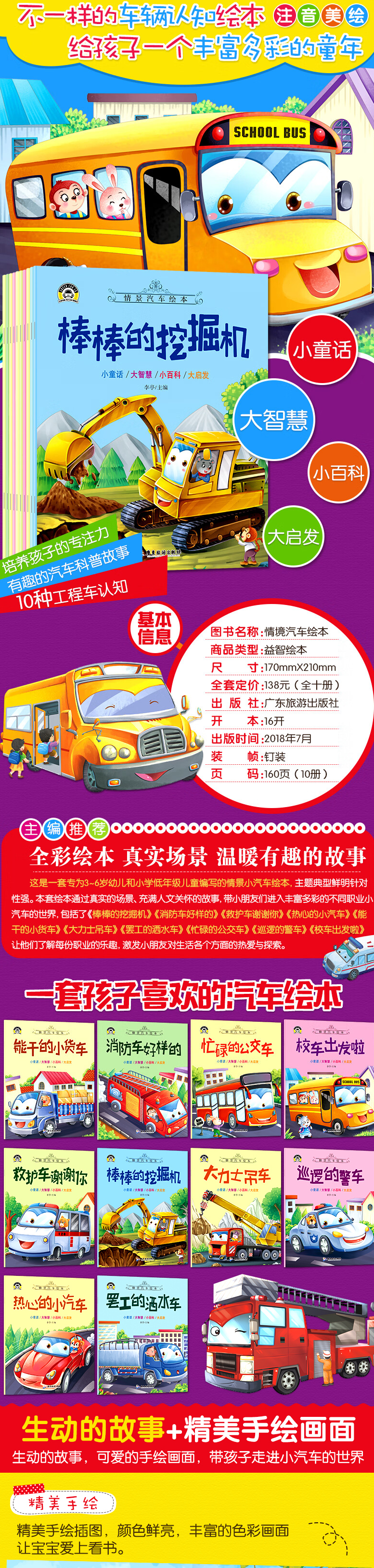 棒棒的挖掘机等全10册 正版情景汽车绘本故事书
