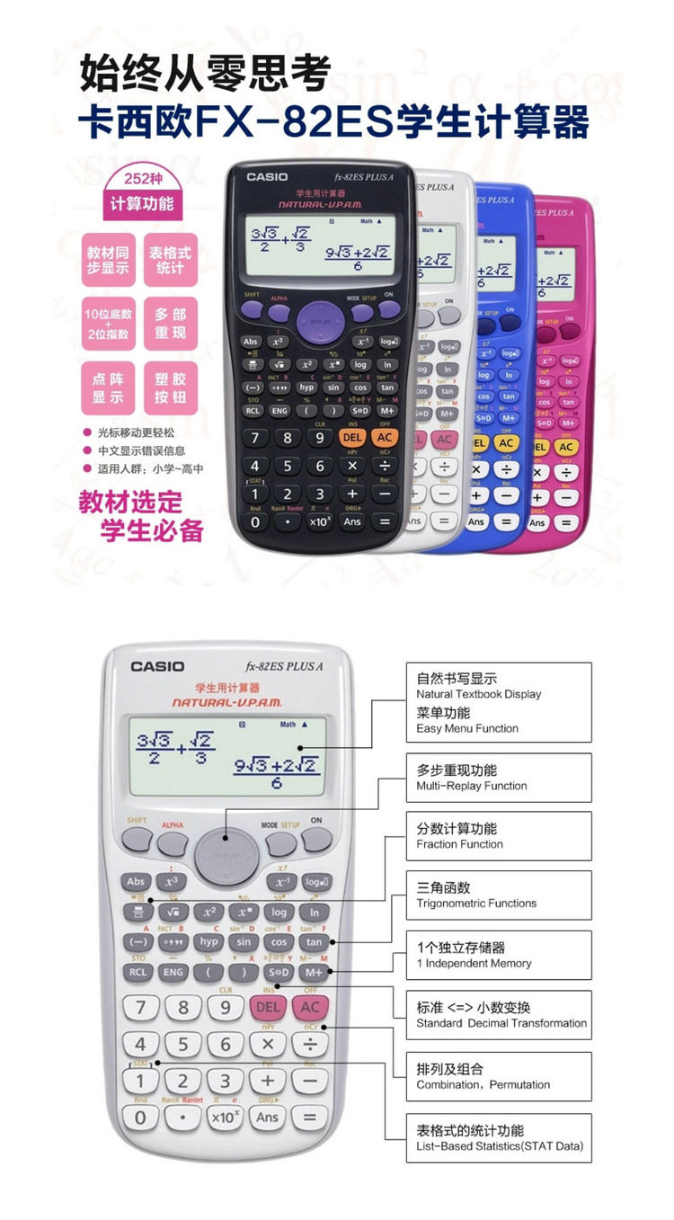 卡西欧(Casio) 学生用函数计算器 FX-82ES PLUS A 黑色