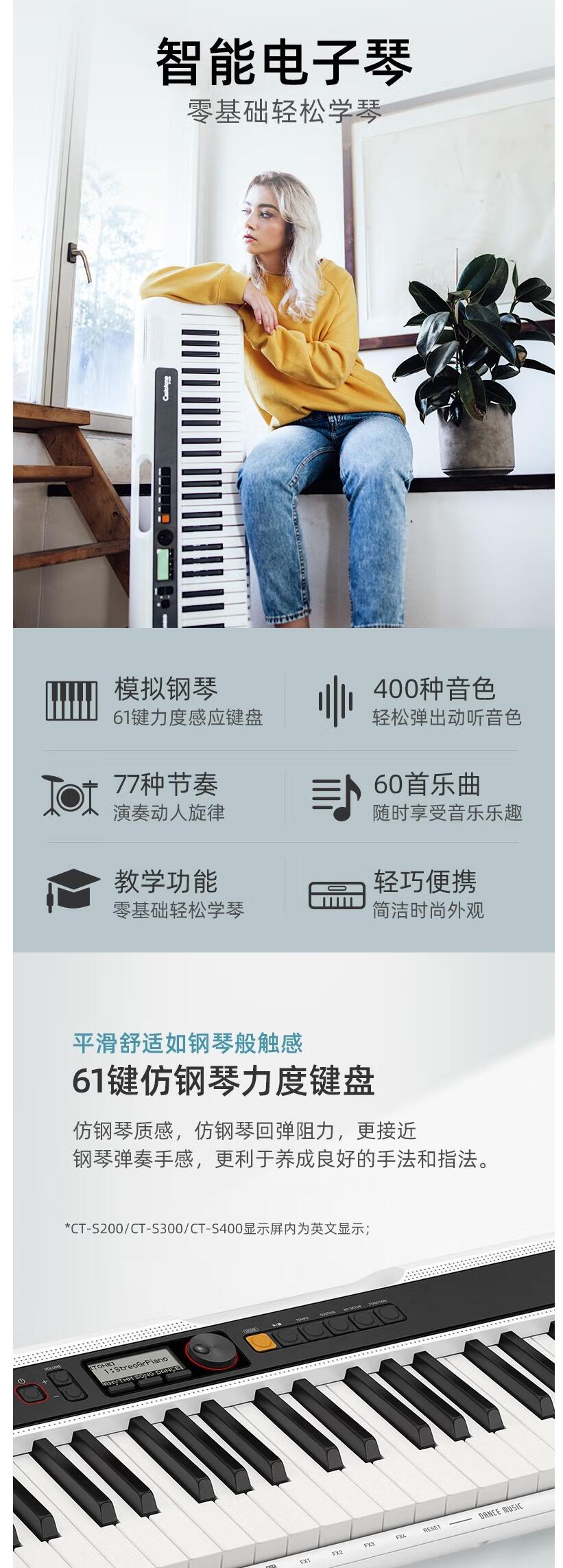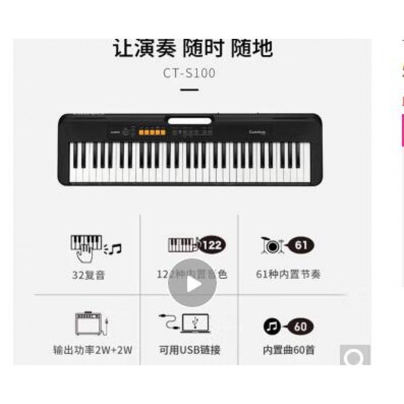 卡西欧(CASIO)智能电子琴CT-S系列便携式61键儿童成人初学入门演奏专业电子乐器 CT-S100销售单位-台