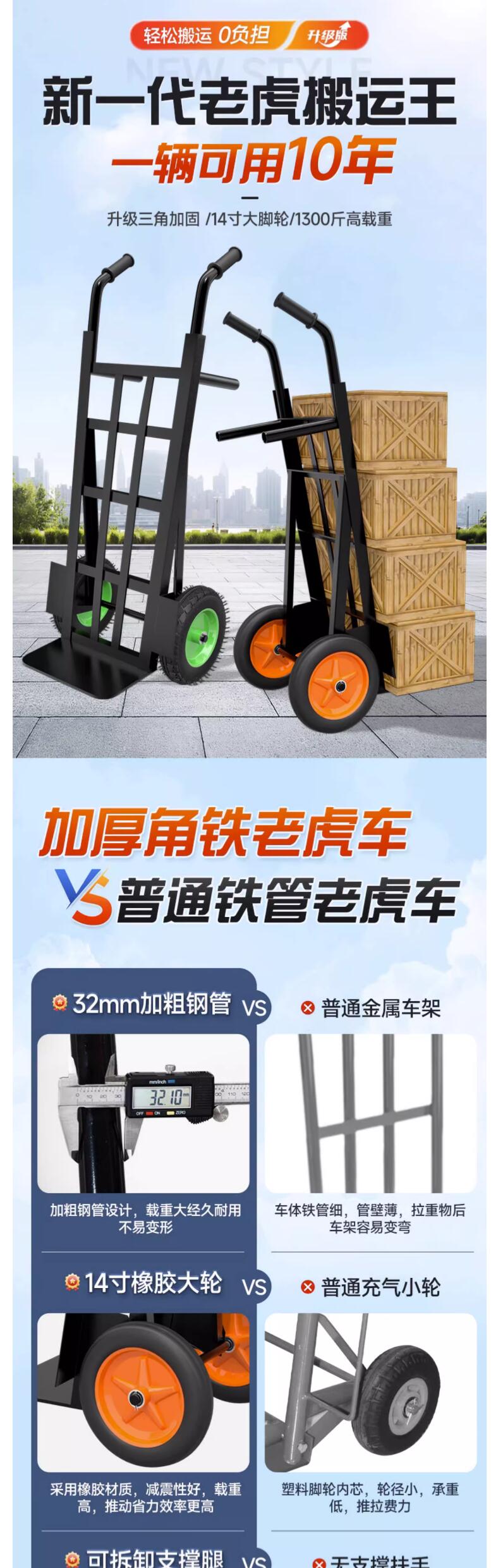 1.3米特厚角铁,700斤承中,8寸实心轮老虎车 销售单位/辆