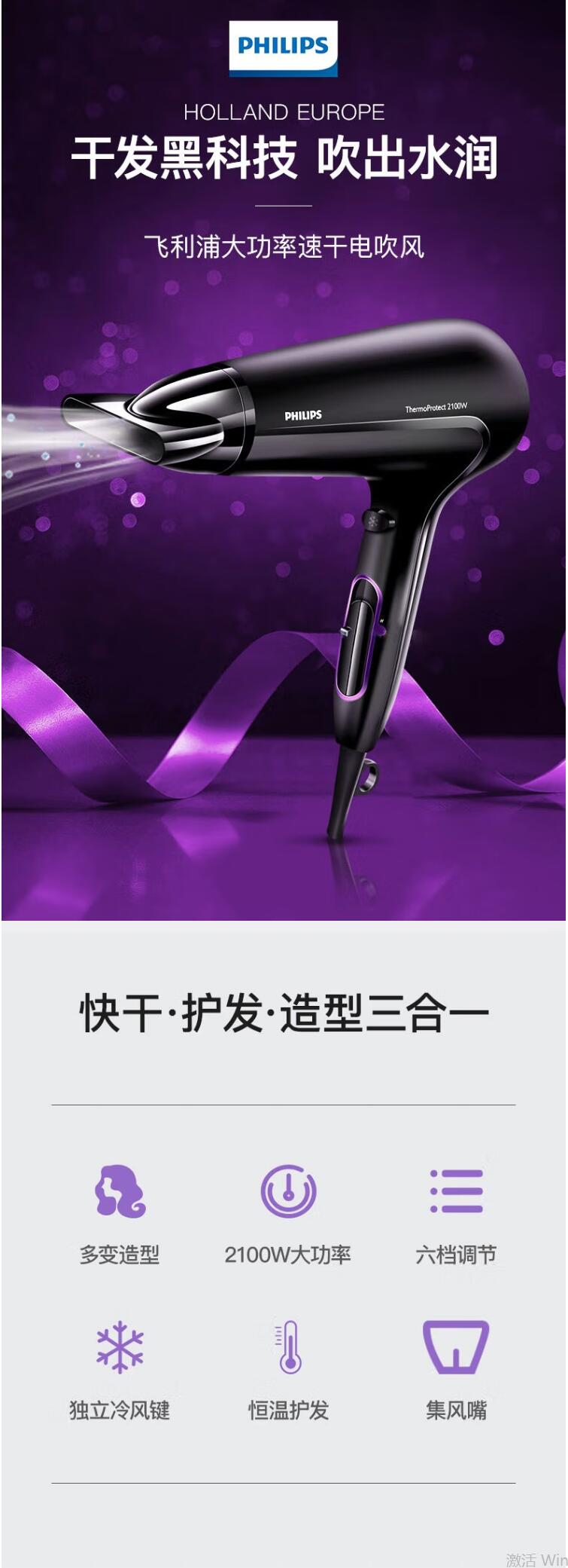 PHILIPS飞利浦吹风机大功率2100W家用恒温护发