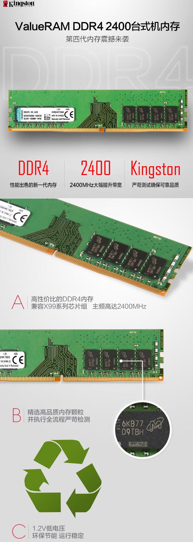 金士顿 (Kingston) 8GB DDR4 2666 台式机专用内存条
