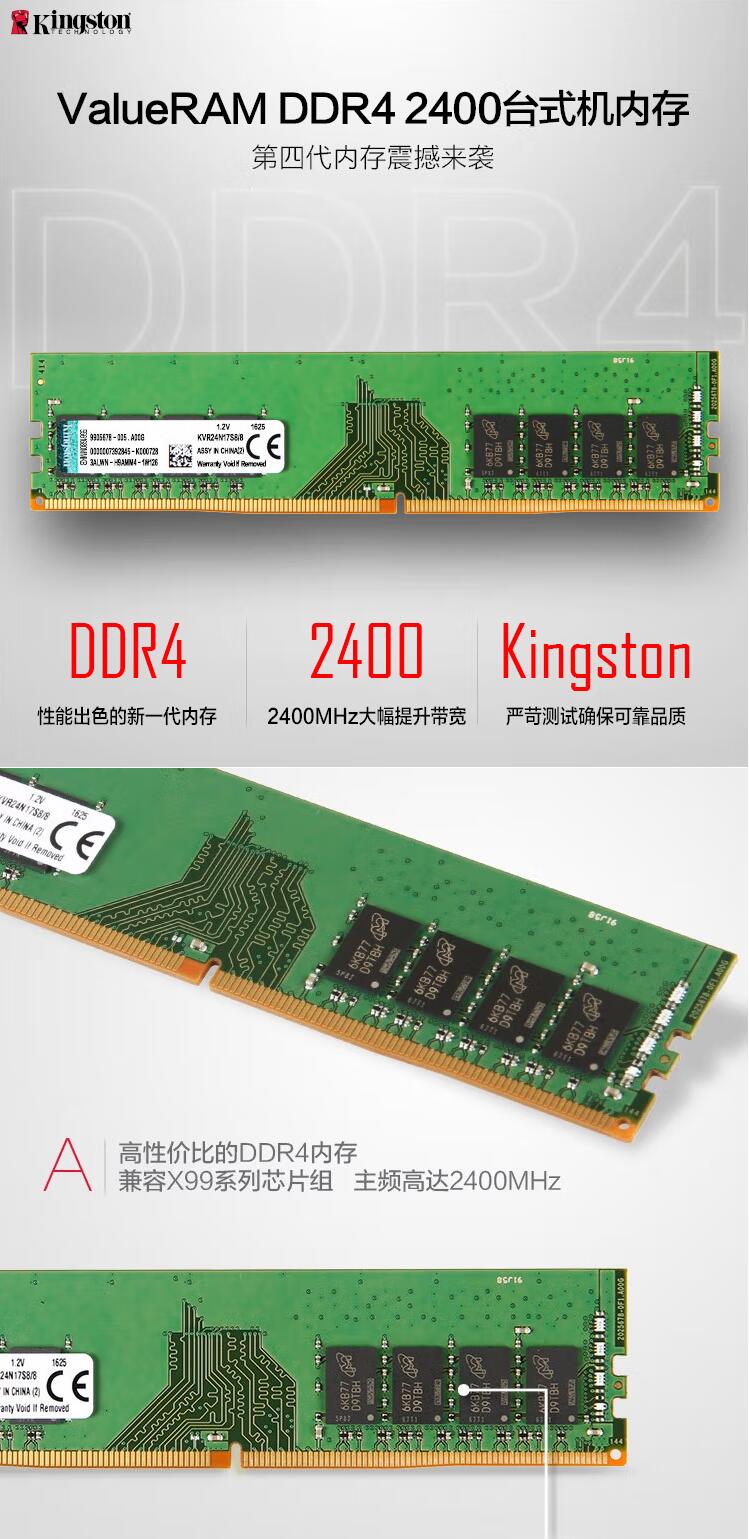 金士顿 (Kingston) 8GB DDR4 2666 台式机专用内存条