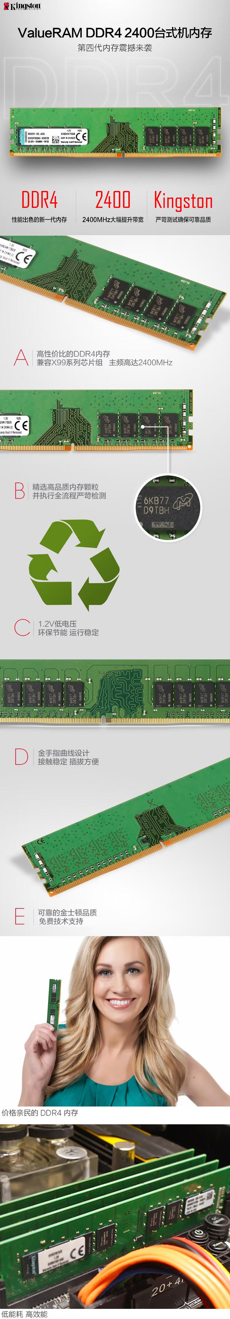 金士顿 (Kingston) 8GB DDR4 2666 台式机专用内存条