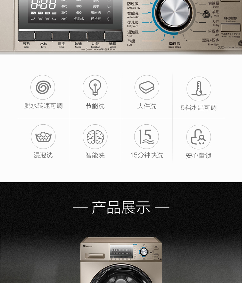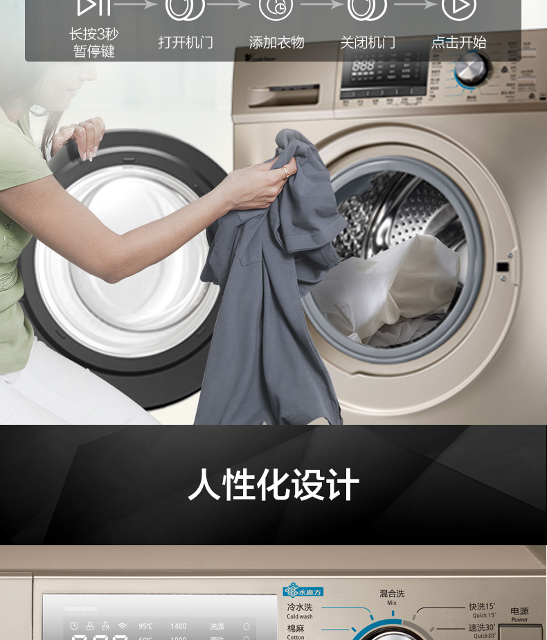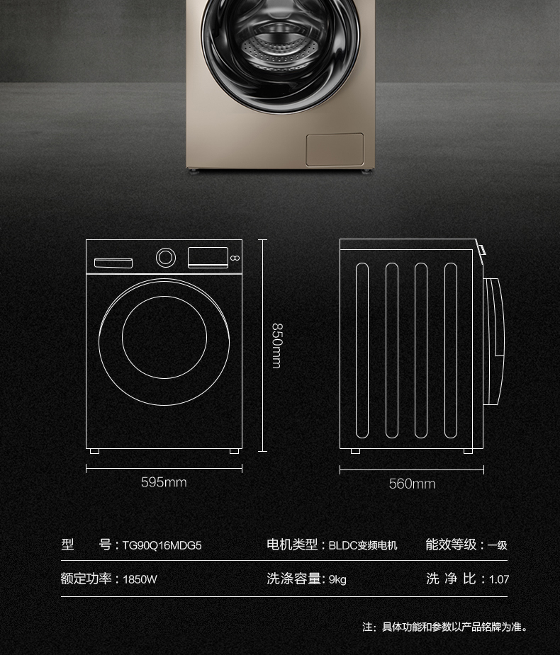 小天鹅LittleSwan 变频节能 滚筒 9kg TG90Q16MDG5 洗衣机(销售单位:台)