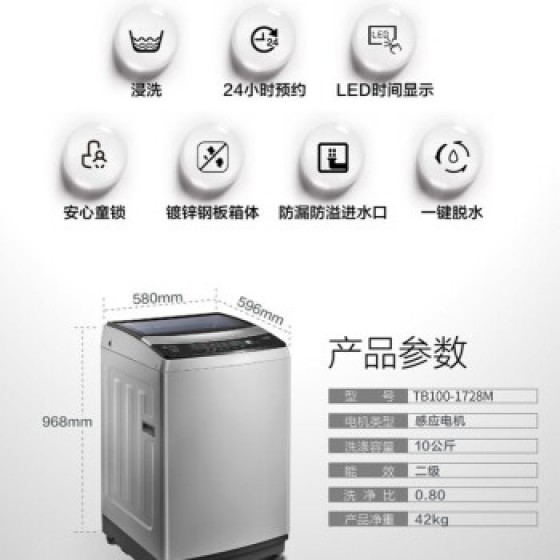 小天鹅TB100-1728M 10公斤大容量自动波轮洗衣机