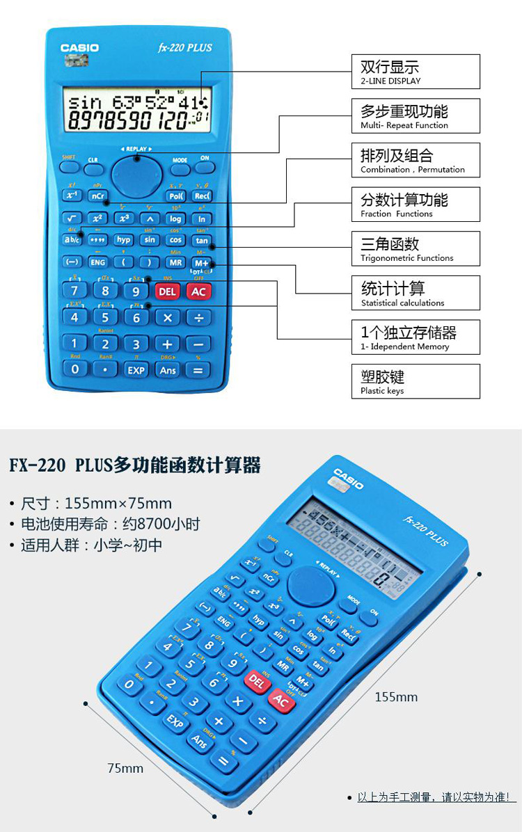 多步重现功能,自然书写显示,多步重现功能,自然规范显示,分数计算,组合和排列。